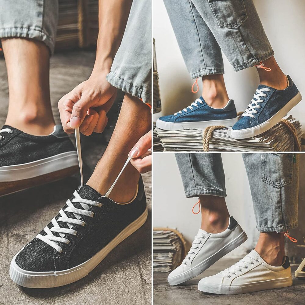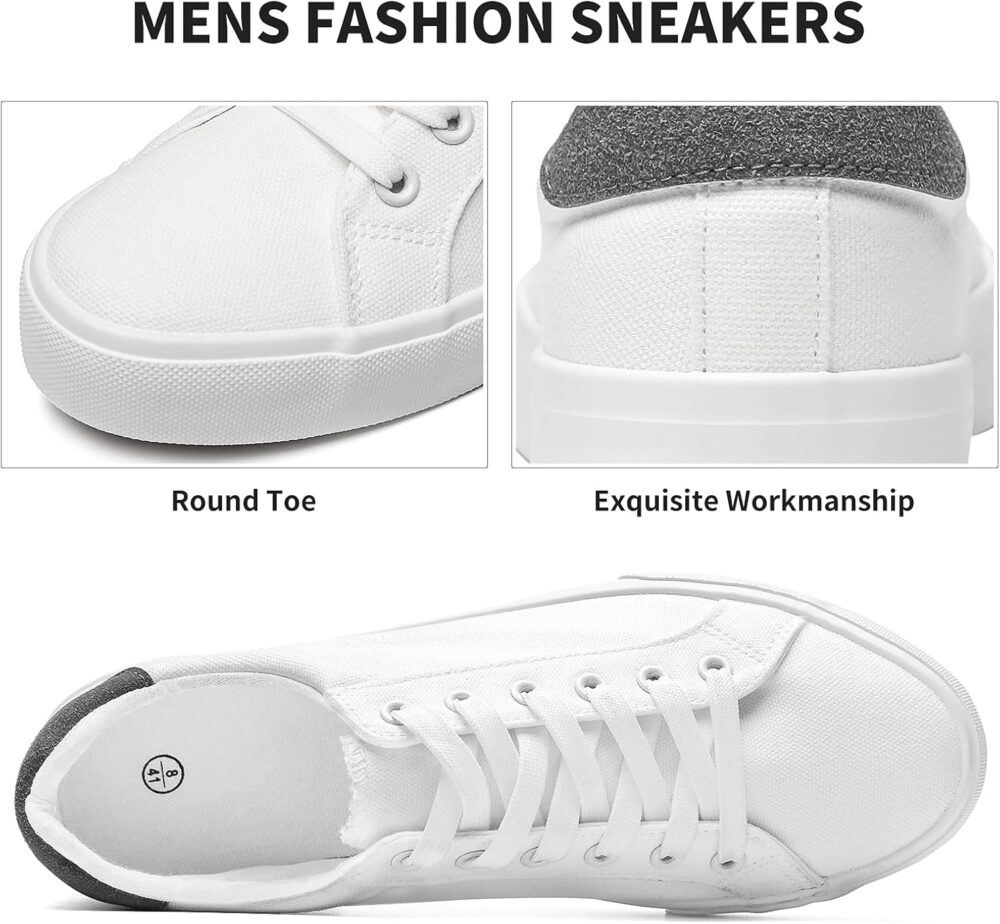 Mens Canvas Shoes White Black Sneakers Low Top Lace Up Casual Shoes