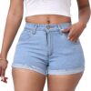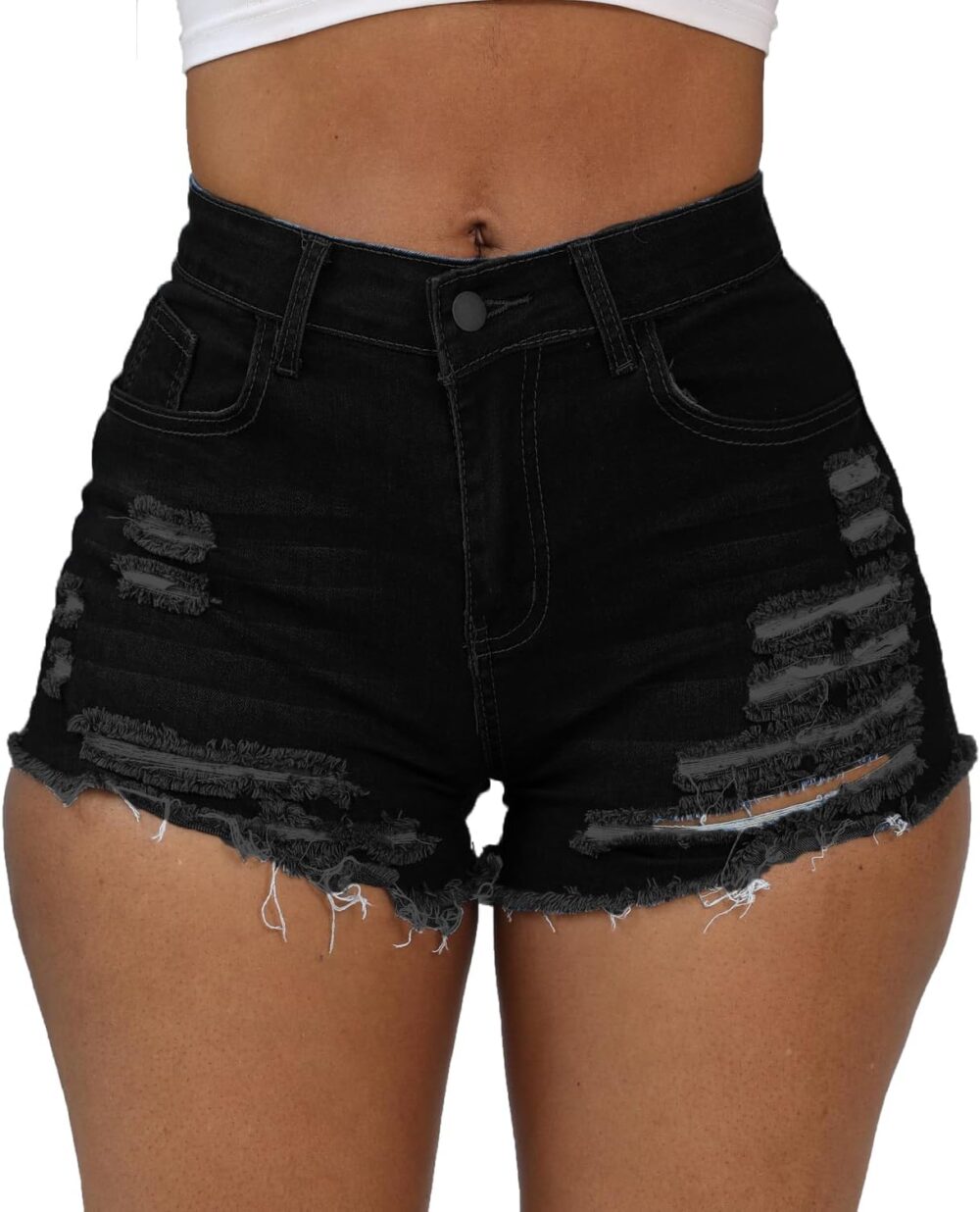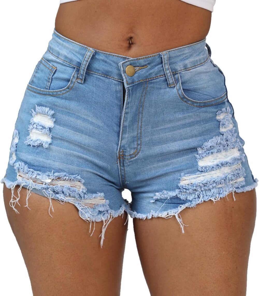 Women Jean Short Ripped Hot Shorts Comfy Stretchy Women Fringed Denim Shorts