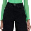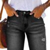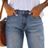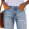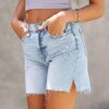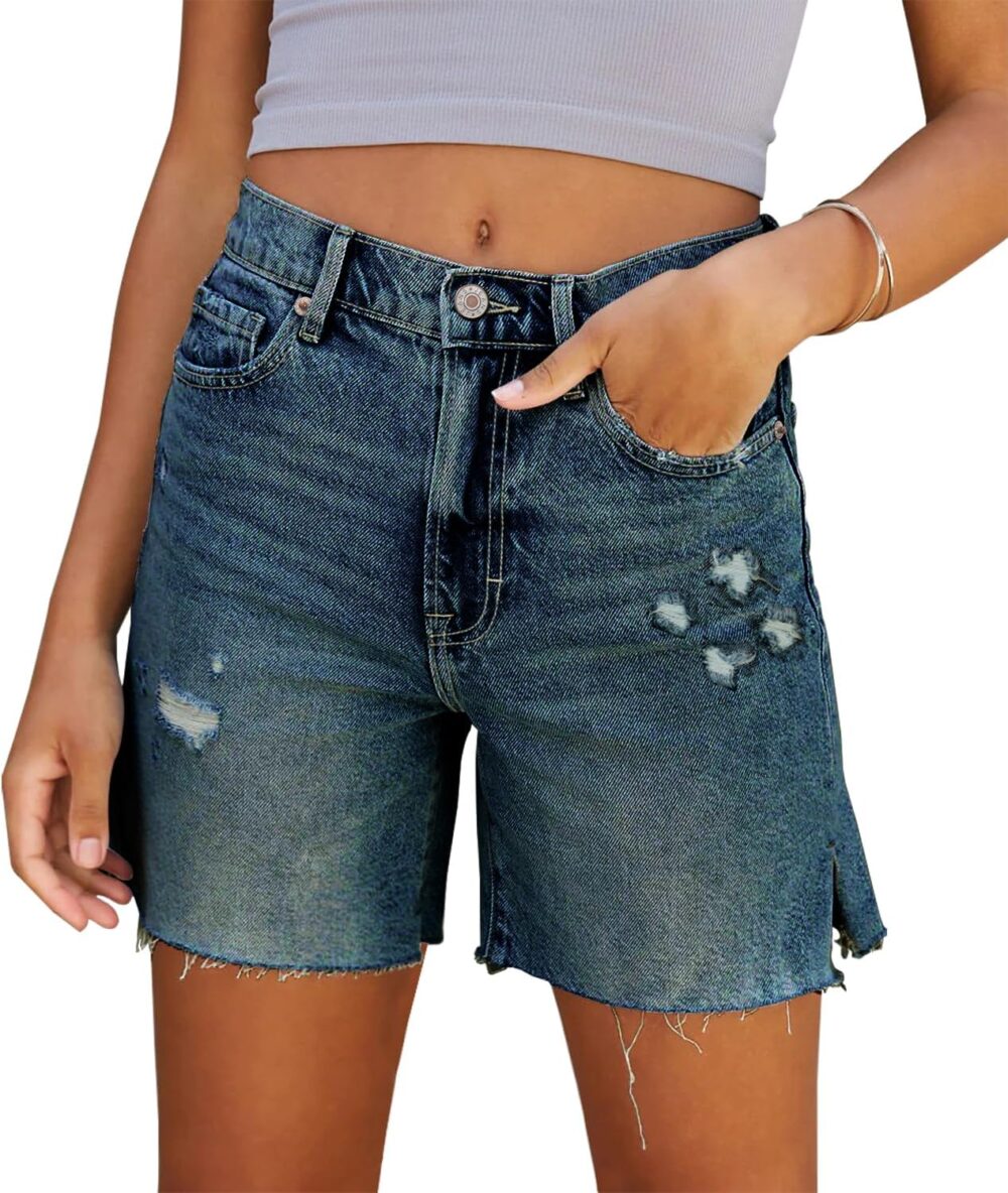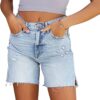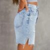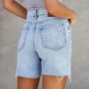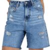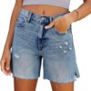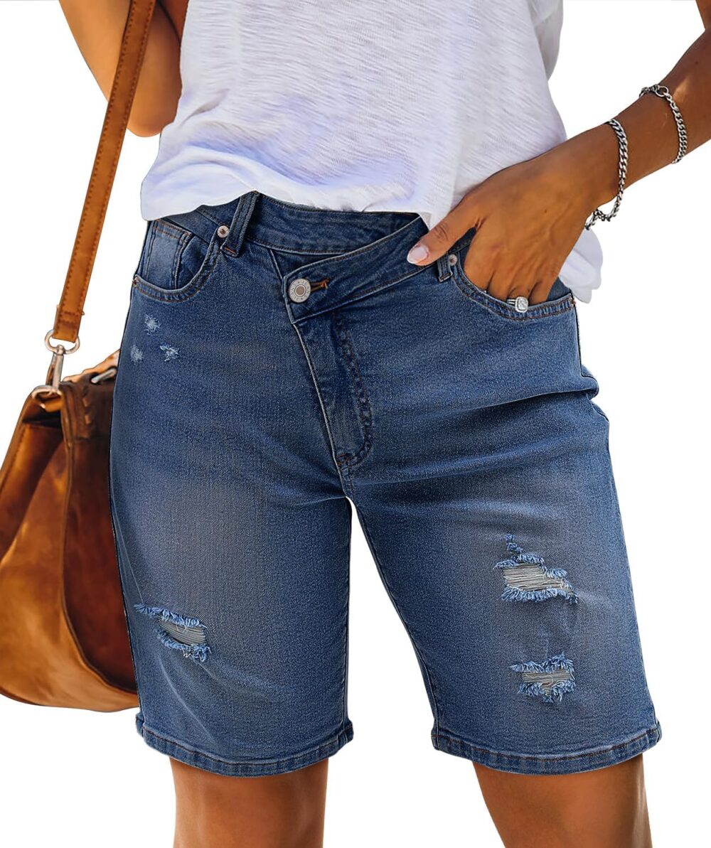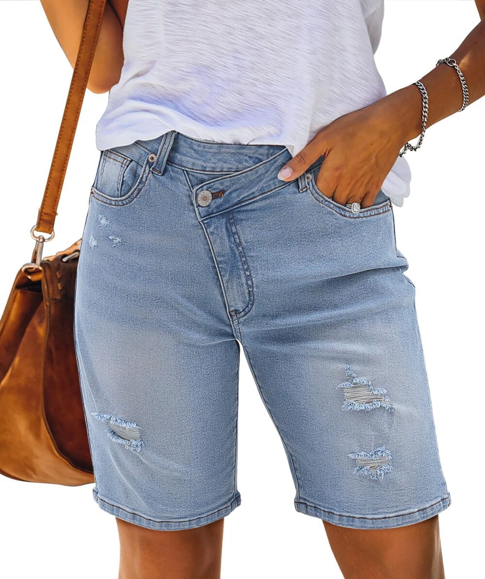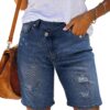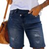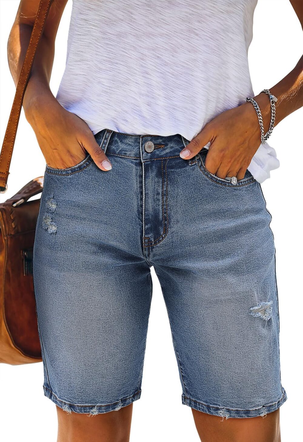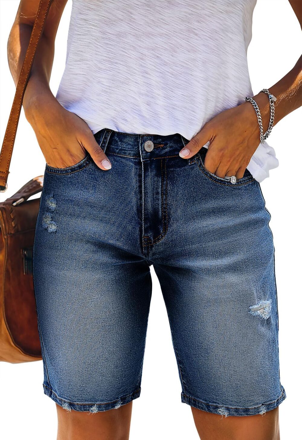 Womens Bermuda Jean Shorts Stretchy Mid Waisted Denim Shorts with Pockets