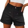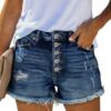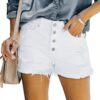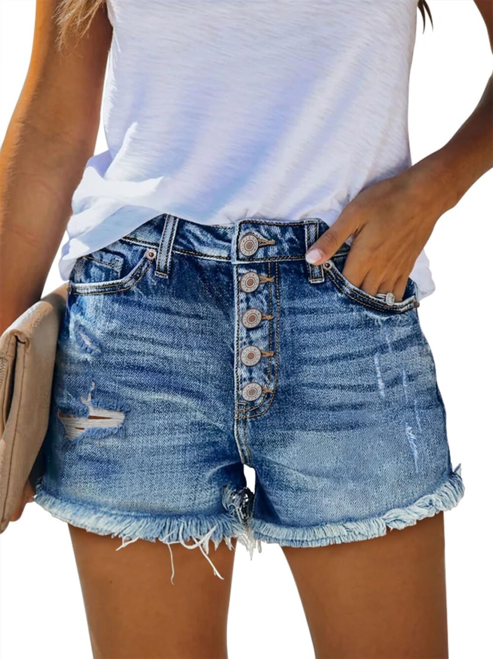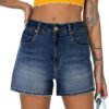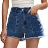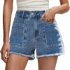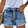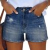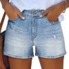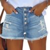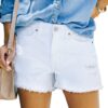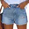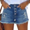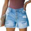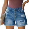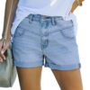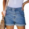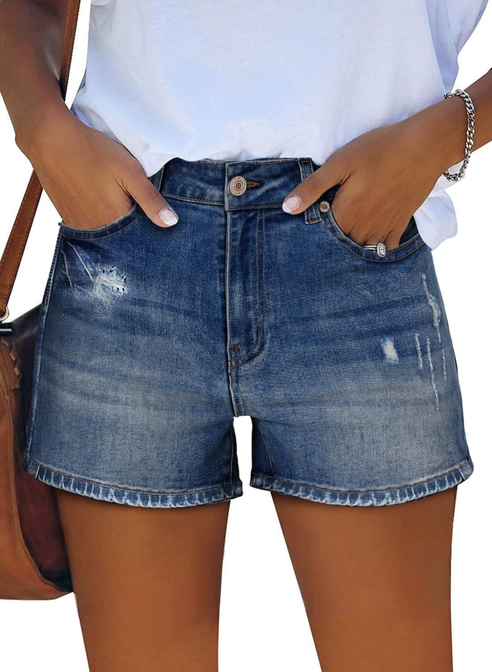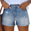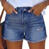Women’s Casual Summer Denim Shorts Mid Waisted Stretchy Ripped Jean Shorts with Pockets
