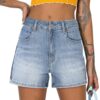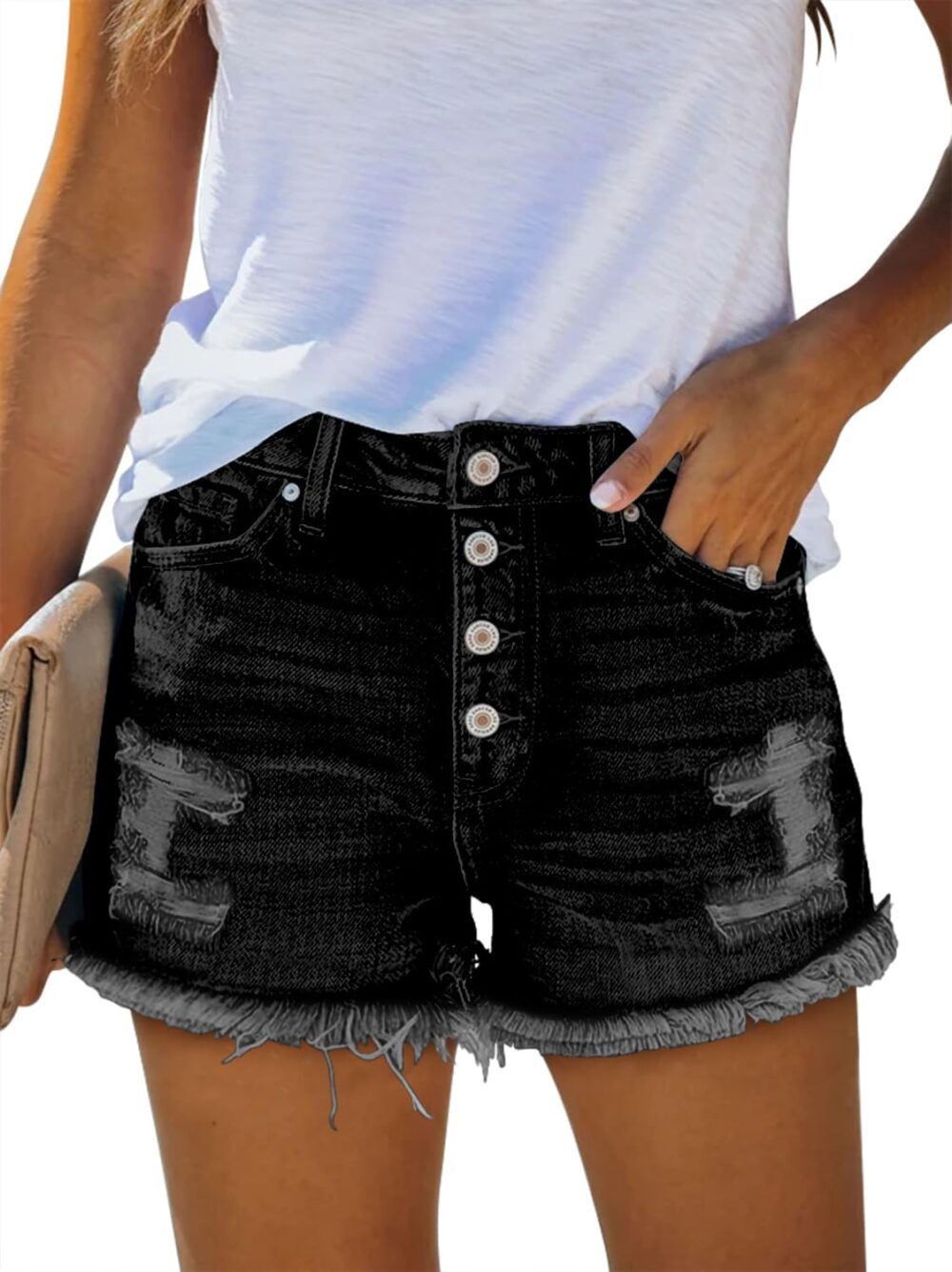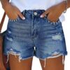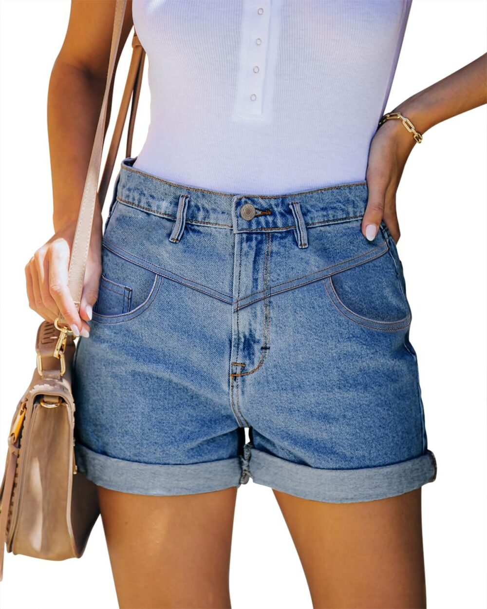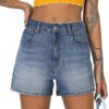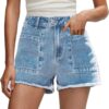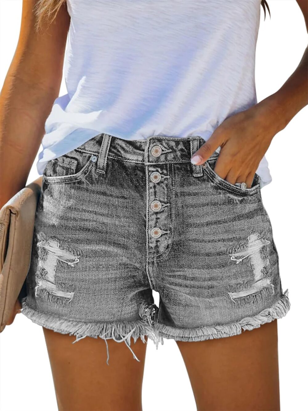 Women’s Casual Summer Denim Shorts Mid Waisted Stretchy Ripped Jean Shorts with Pockets